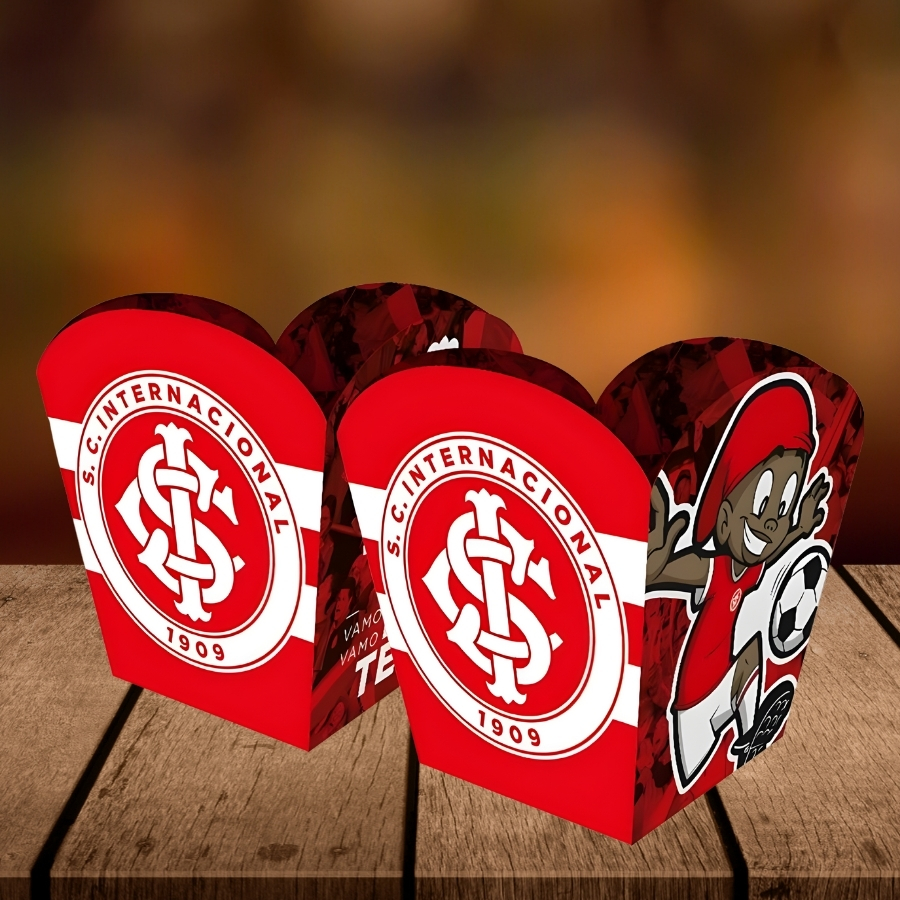 Perfeito para aniversários, confraternizações e eventos esportivos, o cachepot proporciona organização e acabamento elegante. Ele permite dispor brigadeiros, balas e lembrancinhas de forma ordenada, garantindo que a decoração siga o tema Internacional com facilidade e impacto visual.