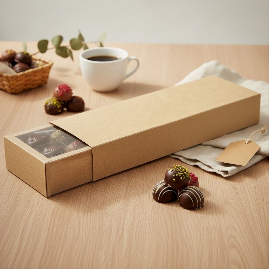 A Caixa 20 Doces Retangular Kraft com Luva é perfeita para quem busca uma embalagem prática, elegante e resistente para doces finos, trufas, brigadeiros e bombons. Produzida em papel kraft de alta qualidade, ela possui design alongado e moderno, garantindo uma apresentação charmosa e profissional aos seus produtos.