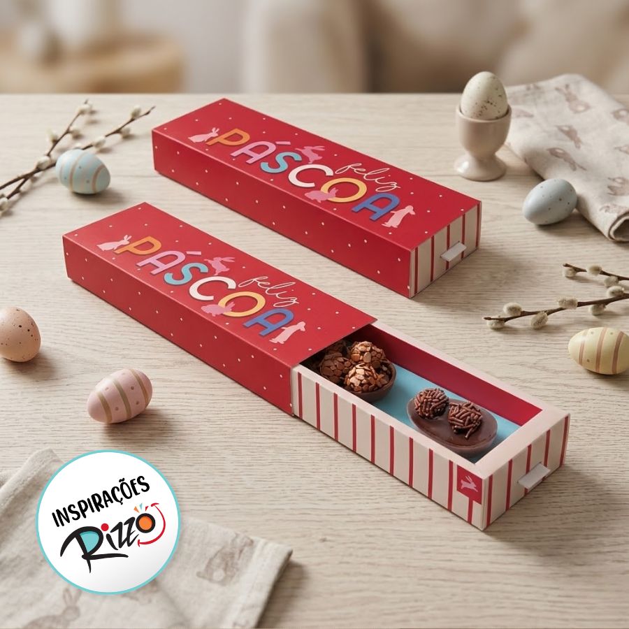 A linha Feelings se destaca pelo acabamento elegante e pela estrutura firme, que garante proteção aos produtos durante o transporte. Perfeita para confeiteiros que desejam unir beleza e praticidade em datas especiais como a Páscoa.