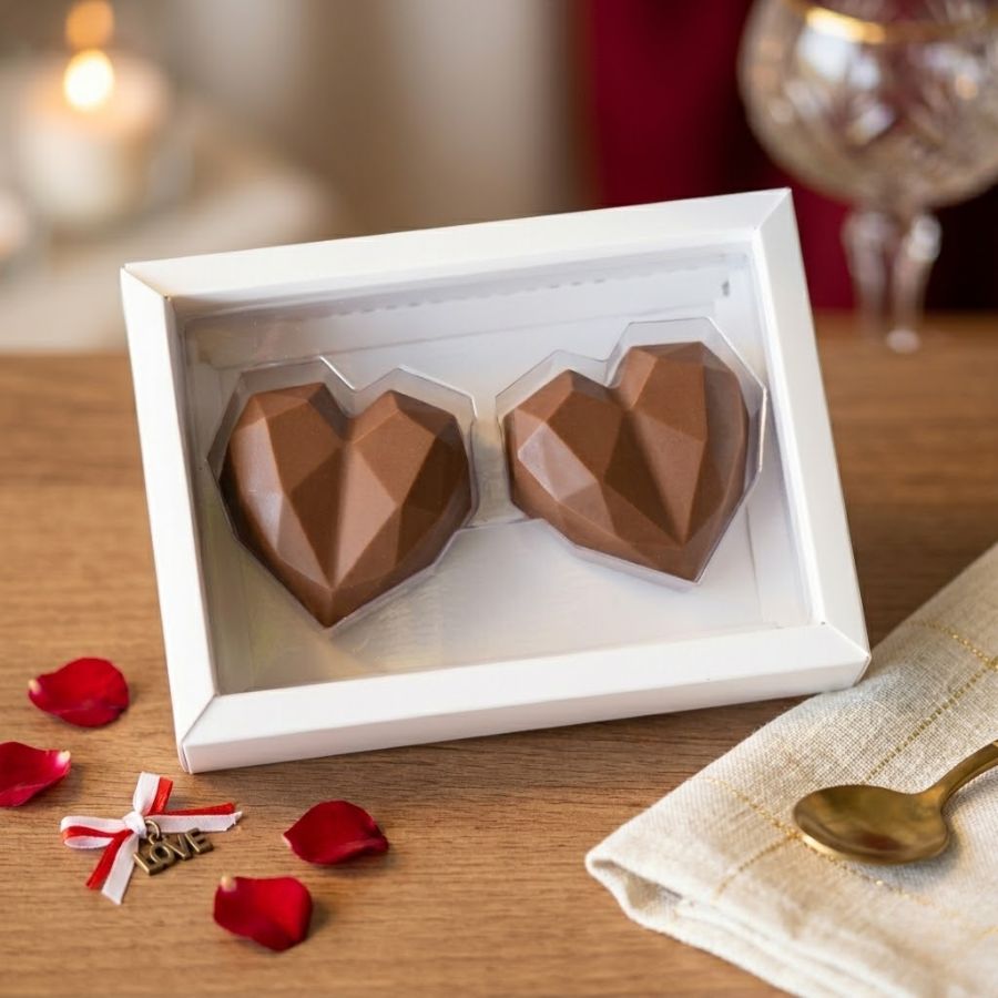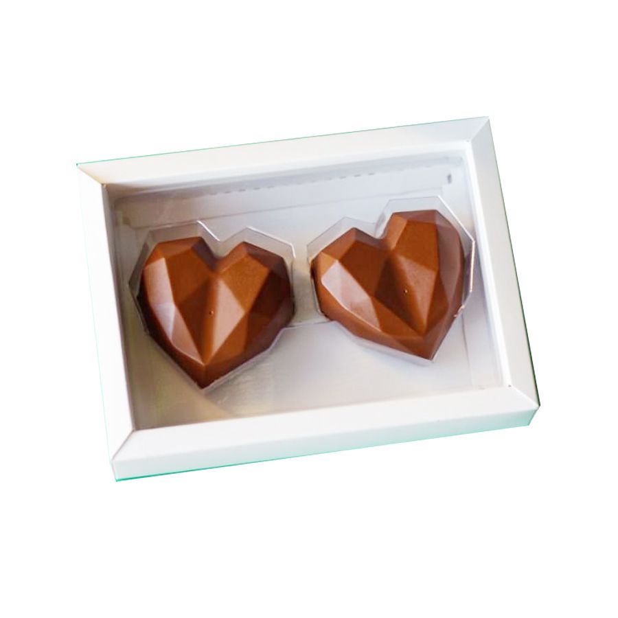 Caixa Coração Lapidado de 70 à 100gr 2 Cavidades - Branco - 05 unidades - Crystal - Rizzo Embalagens