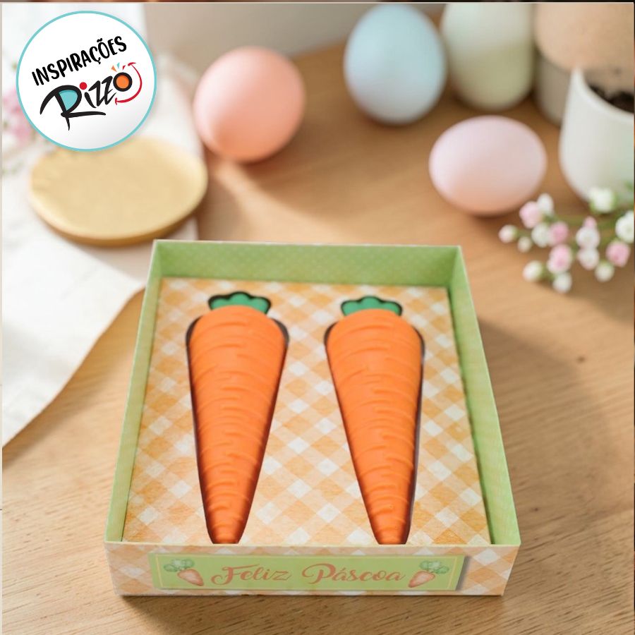 Caixas para Doces de Páscoa são uma ótima opção para presentear nessa páscoa, embalagens de páscoa lindas e únicas para presentear com estilo. A Caixa Degustação Cenoura é diferente de todas as outras caixinhas, com o berço especialmente desenvolvido para uma cenoura, tem encaixe perfeito e acompanha berço, tampa de acetato e Tag.