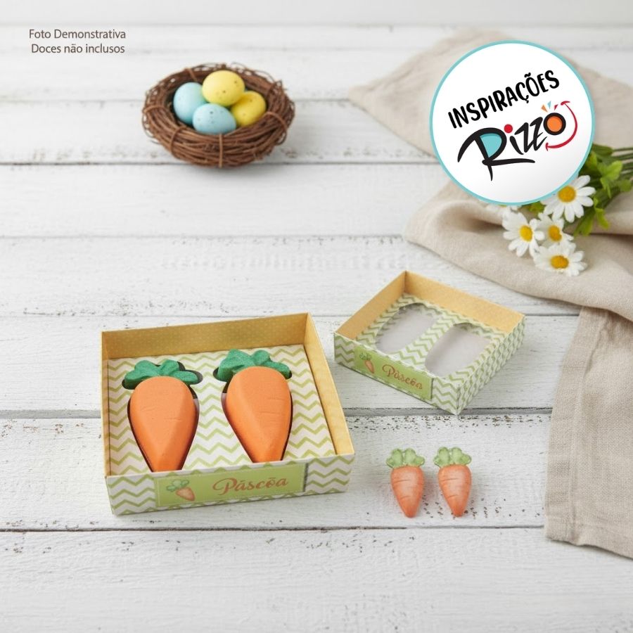 Caixas para Doces de Páscoa são uma ótima opção para presentear nessa páscoa, embalagens de páscoa lindas e únicas para presentear com estilo. A Caixa Degustação Cenoura é diferente de todas as outras caixinhas, com o berço especialmente desenvolvido para uma cenoura, tem encaixe perfeito e acompanha berço, tampa de acetato e Tag.