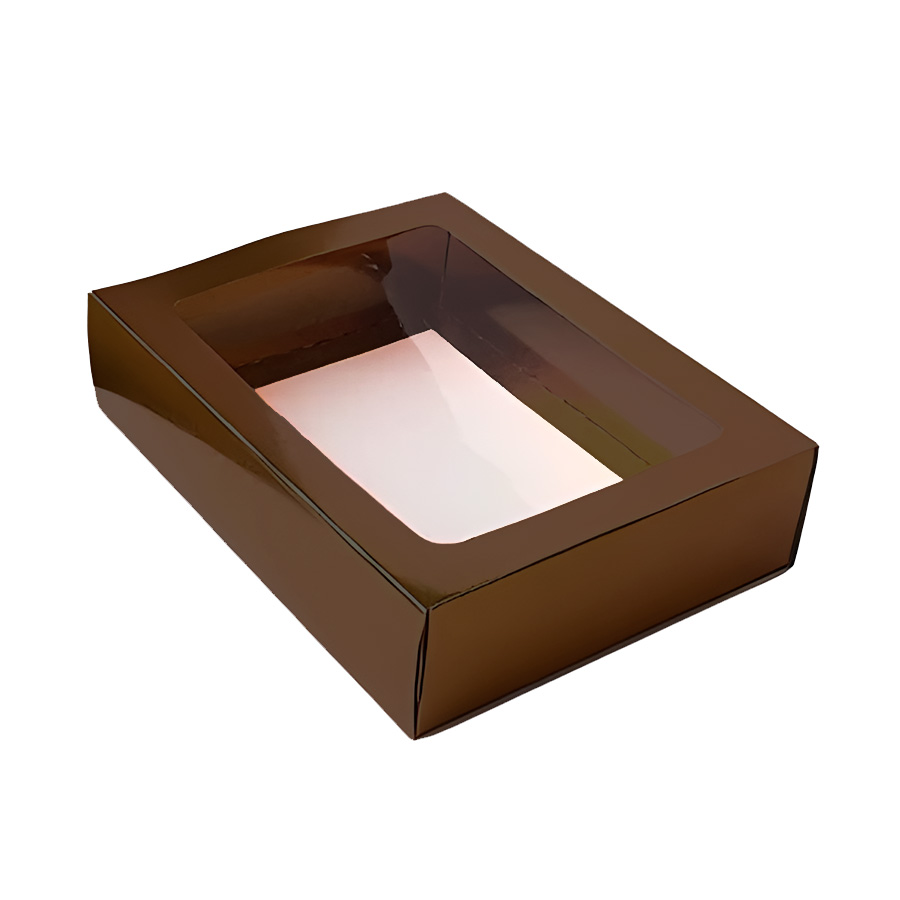 A Caixa Gaveta com Visor Nº3 (12cm x 16cm x 4cm) na cor marrom é uma solução prática e elegante para embalar e exibir pequenos presentes ou lembrancinhas. Com seu design em formato de gaveta e um visor transparente, ela permite que o conteúdo fique visível, agregando valor ao produto e facilitando a apresentação de itens como doces, bijuterias e acessórios. Seu estilo clean e sofisticado adapta-se a diversas ocasiões, como festas, eventos e presentes especiais.