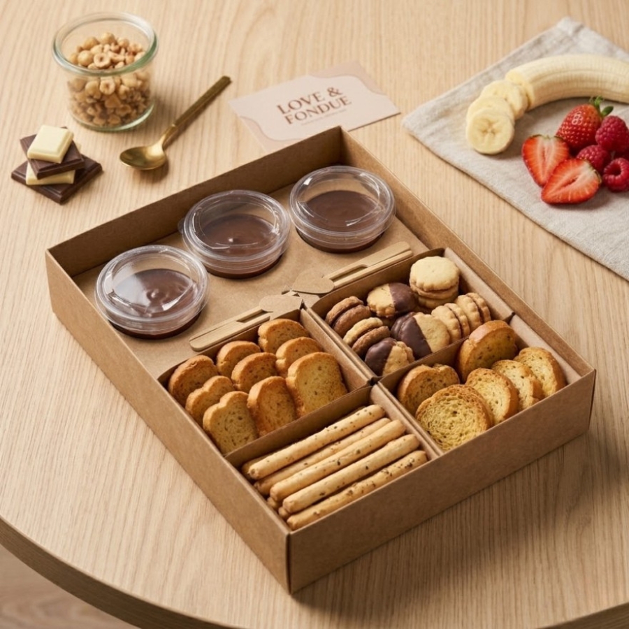 Com um design elegante e acabamento em kraft, o kit acompanha potinhos e palitos para petiscos, oferecendo praticidade na hora de montar e servir. Ideal para criar aquela noite de fondue perfeita, seja para um jantar especial, uma surpresa romântica ou até mesmo para encantar clientes com uma apresentação diferenciada.