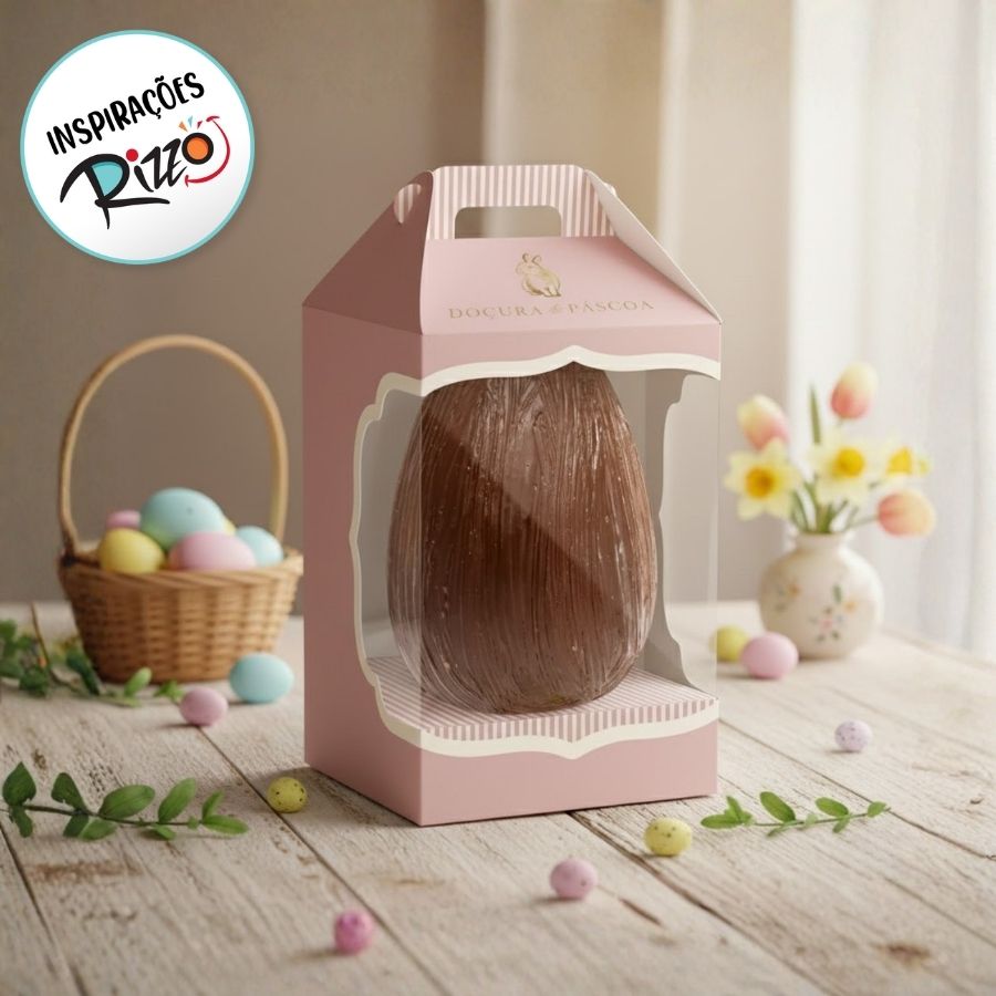 A Caixa New Practice para Meio Ovo de 250g é elegante, prática e resistente, perfeita para destacar o produto com beleza e modernidade.