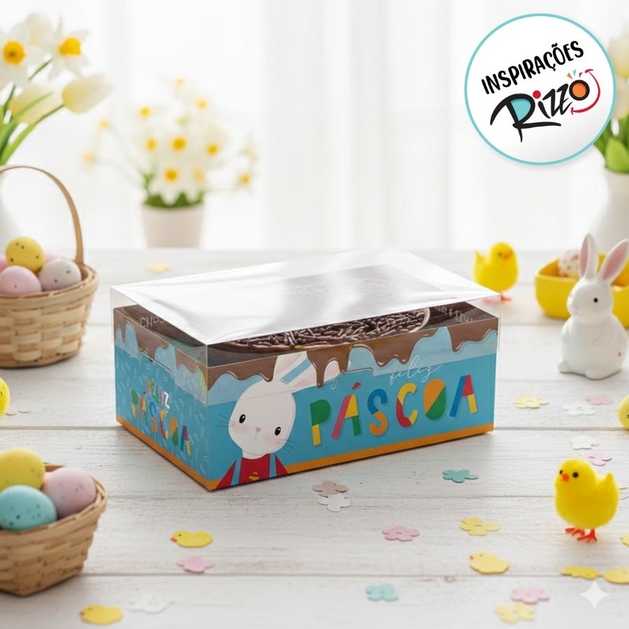 Caixa New Practice para Meio Ovo de 500g com Regulagem de Altura e Colher – Brilho de Páscoa é uma embalagem sofisticada e funcional, ideal para valorizar ovos de colher maiores com uma apresentação elegante e profissional. O acabamento com efeito brilho proporciona destaque visual e um toque festivo, perfeito para composições especiais de Páscoa.