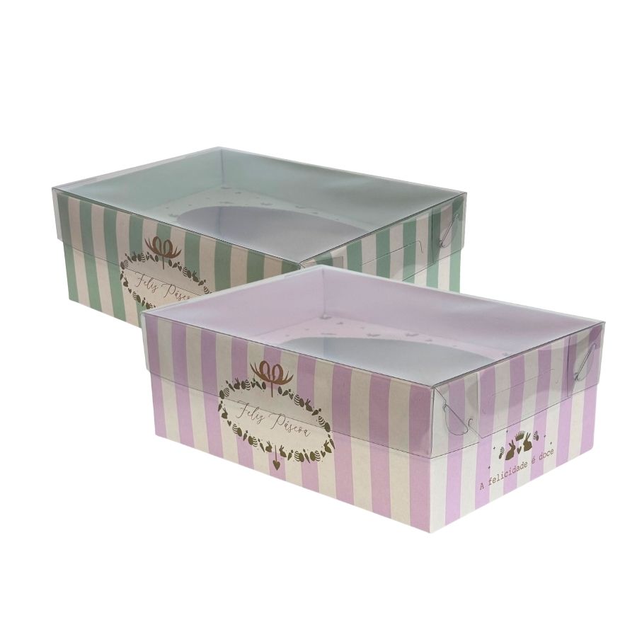 Com design moderno e resistente, essas caixas são ideais para acomodar meio ovo de chocolate com recheios diversos. O acabamento em tons pastéis transmite leveza e elegância, tornando a embalagem ainda mais atrativa para presentes e lembranças de Páscoa. Uma solução prática e encantadora para confeiteiros que buscam agregar valor ao seu produto artesanal.
