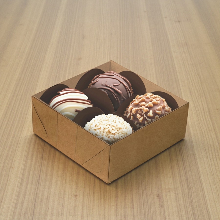 Indicada para confeiteiros, docerias e produções artesanais, essa caixa atende à necessidade de acomodar até 4 doces de forma organizada e segura. A tampa transparente permite a visualização do conteúdo, enquanto o formato compacto facilita o transporte e agrega valor à apresentação final.