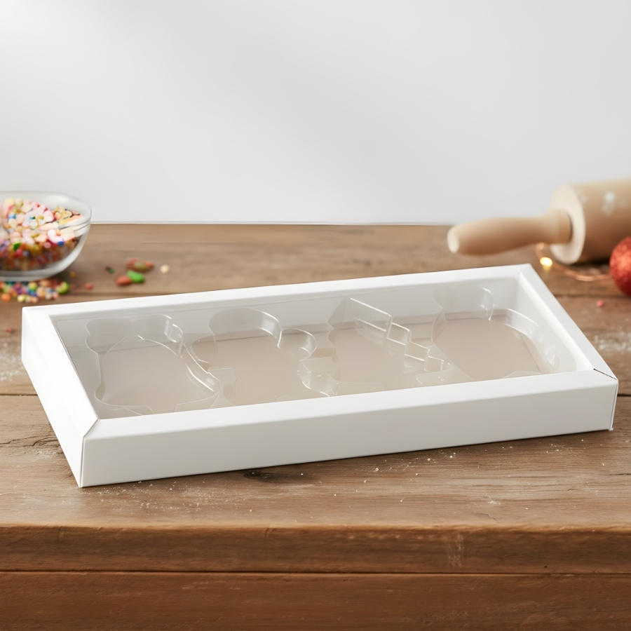 Essa caixa resolve a necessidade de organizar chocolates de forma prática e visualmente atrativa, mantendo cada item bem acomodado. As 4 cavidades facilitam a separação dos chocolates, melhoram a apresentação interna e aumentam a percepção de cuidado e qualidade, contribuindo para maior destaque no ponto de venda durante o período natalino.