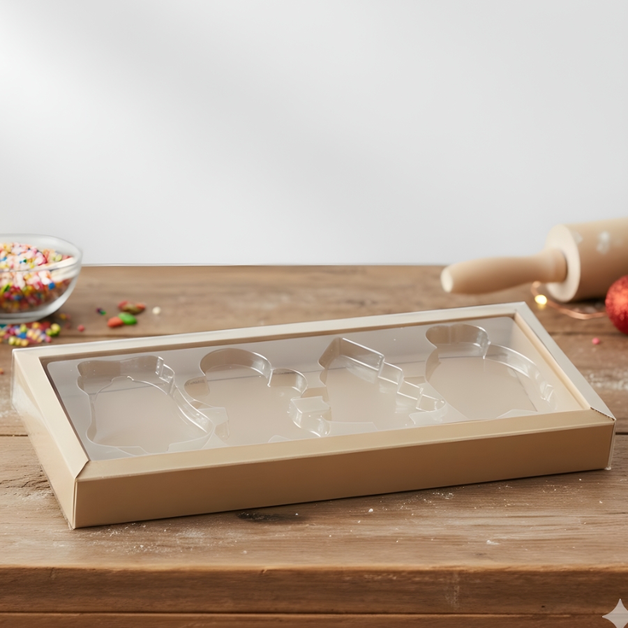 Essa caixa resolve a necessidade de organizar chocolates de forma segura e bem apresentada, mantendo cada item em seu espaço individual. As 4 cavidades facilitam a montagem de kits natalinos, aumentam a percepção de cuidado e qualidade e contribuem para um visual mais profissional no ponto de venda, ajudando a destacar o produto em meio às opções disponíveis.