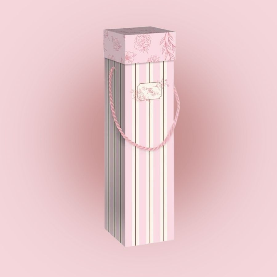 Com aproximadamente 32 cm de altura e 8 cm de largura, a caixa possui um formato alongado ideal para acomodar garrafas de forma segura e organizada. Sua estrutura firme ajuda a proteger o conteúdo durante o transporte, enquanto o design funcional com alça facilita o manuseio e contribui para uma apresentação elegante. Perfeita para montar presentes de Dia das Mães, kits comemorativos, cestas com bebidas ou lembranças especiais, essa embalagem é muito utilizada por lojas, adegas, floriculturas e empreendedores que desejam criar presentes personalizados com mais estilo e praticidade.