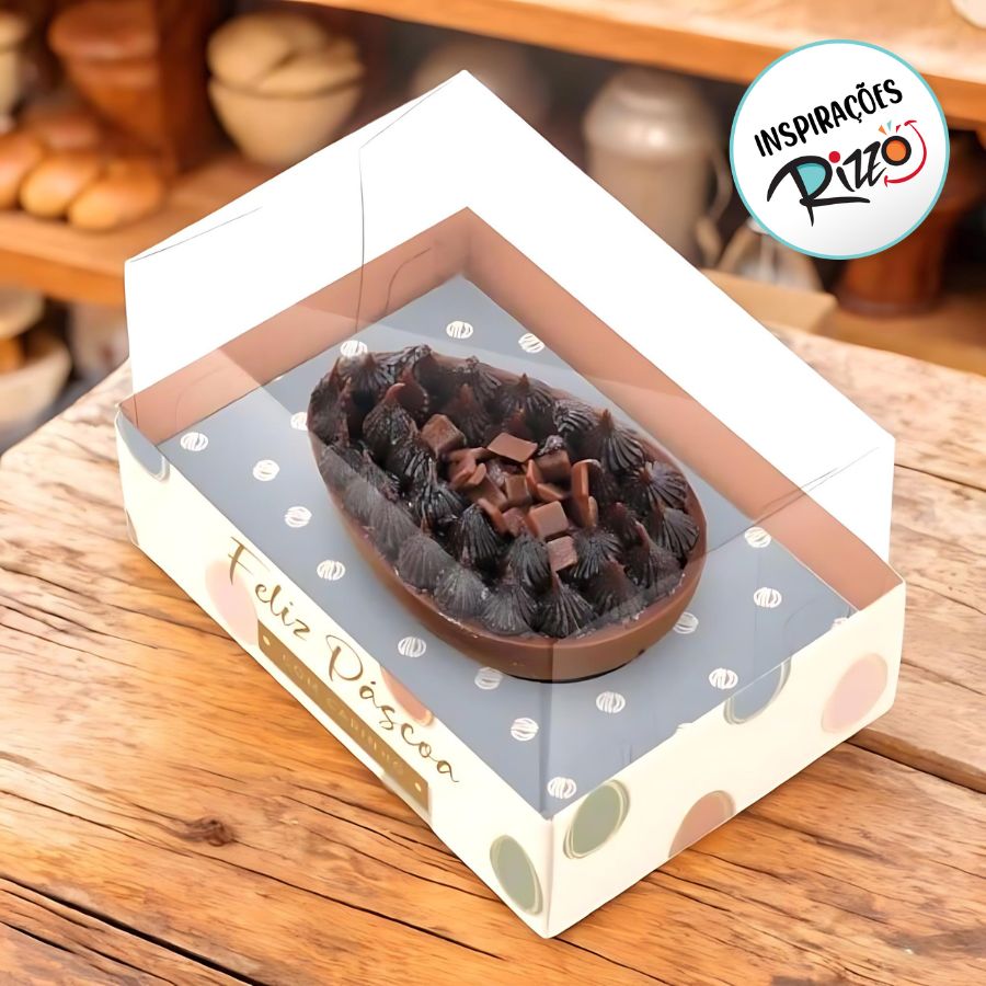 O design Tonal oferece um estilo elegante e moderno, destacando-se na decoração de Páscoa. A Caixa Para Meio Ovo de 50g é perfeita para presentear ou vender chocolates com um toque especial e refina