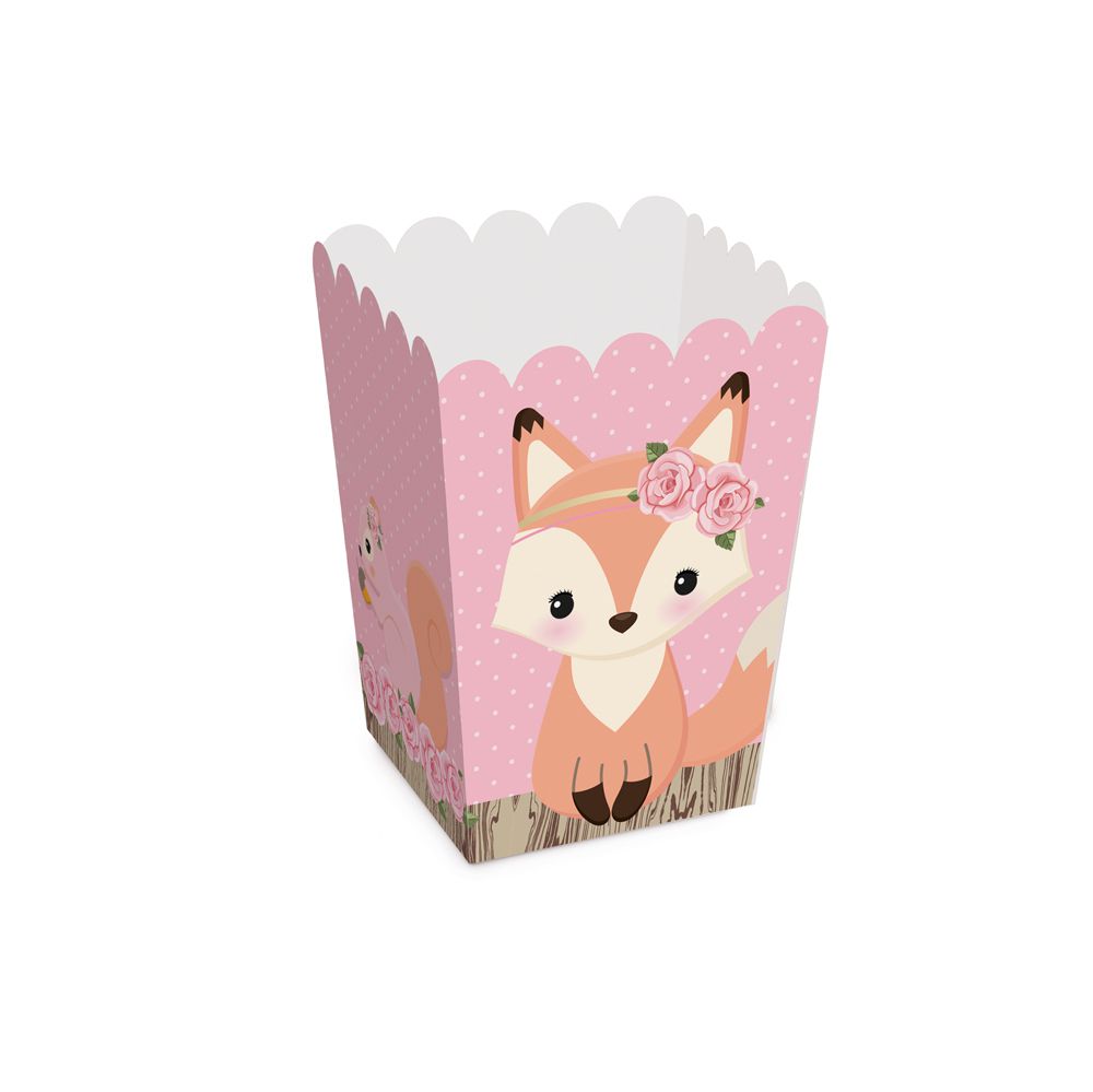 Utilize Caixas Pipoca Festa Bosque dos Sonhos para colocar na mesa de comes e bebes ou na mesa principal para completar a decoração.