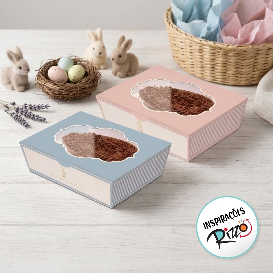 Caixa practice para meio ovo 350g para páscoa do tema Lavie nas duas cores Foundant/Mediterrâneo