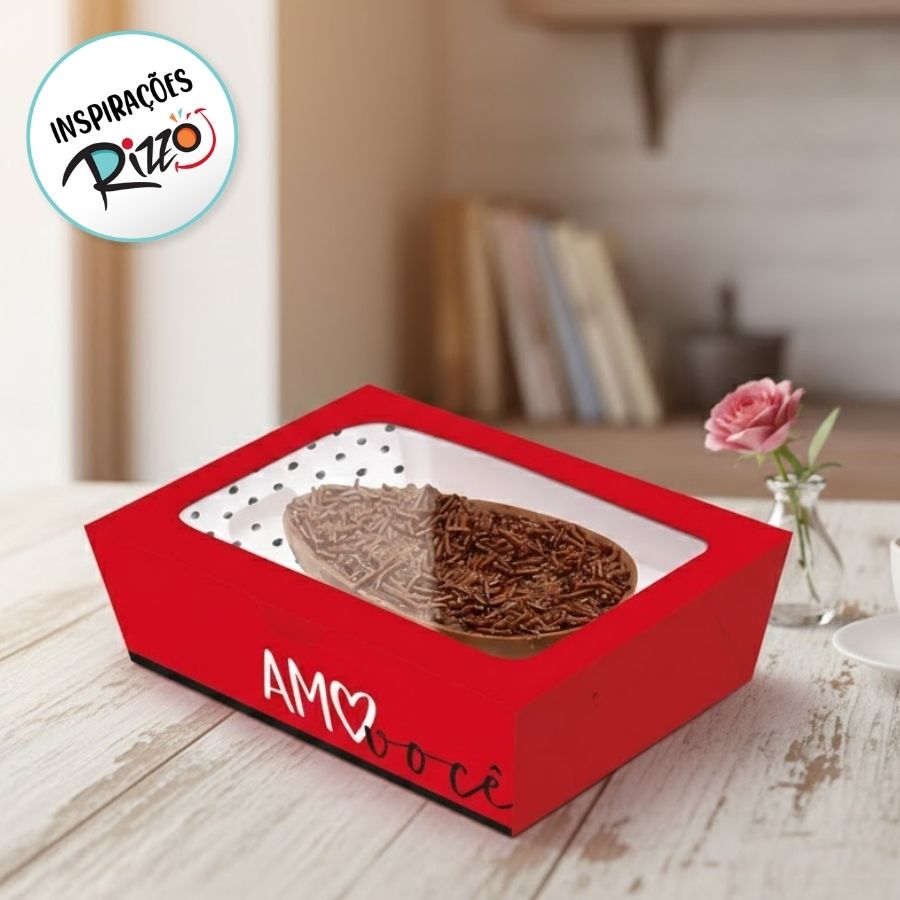 Produzida em material resistente, a caixa oferece excelente proteção ao meio ovo de 500g, garantindo segurança durante o transporte e estabilidade na exposição. A montagem prática facilita o trabalho de confeiteiros e lojistas, enquanto o visual suave reforça a identidade artesanal e cuidadosa do produto.