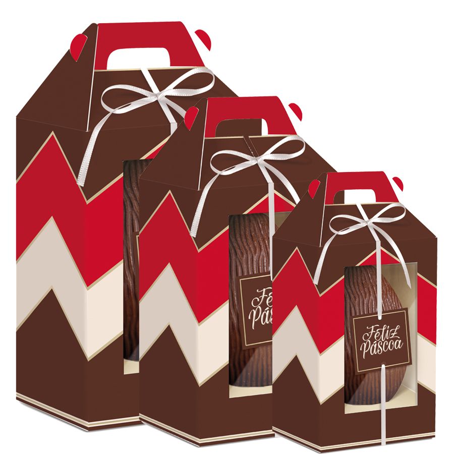 Caixa Maleta Vertical com Visor Douce Vermelho Marrom e Marfim - 06 unidades - Cromus Páscoa - Rizzo Embalagens