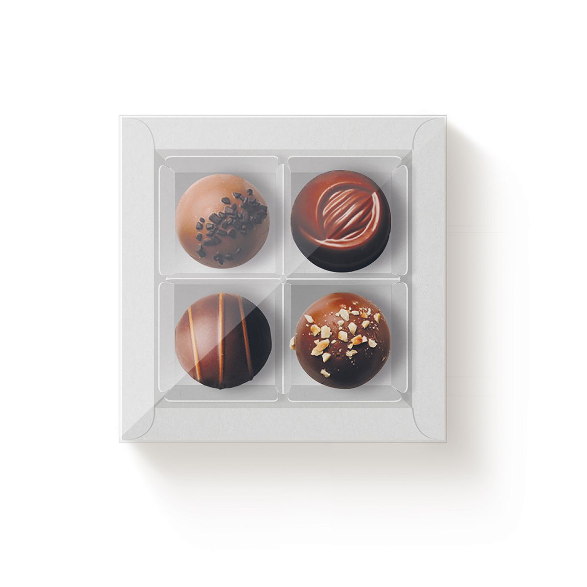 Caixa 4 Doces Quadrada Branco com Tampa Cristal - 10 unidades - 9,5x9,5x4cm - Cromus Profissional