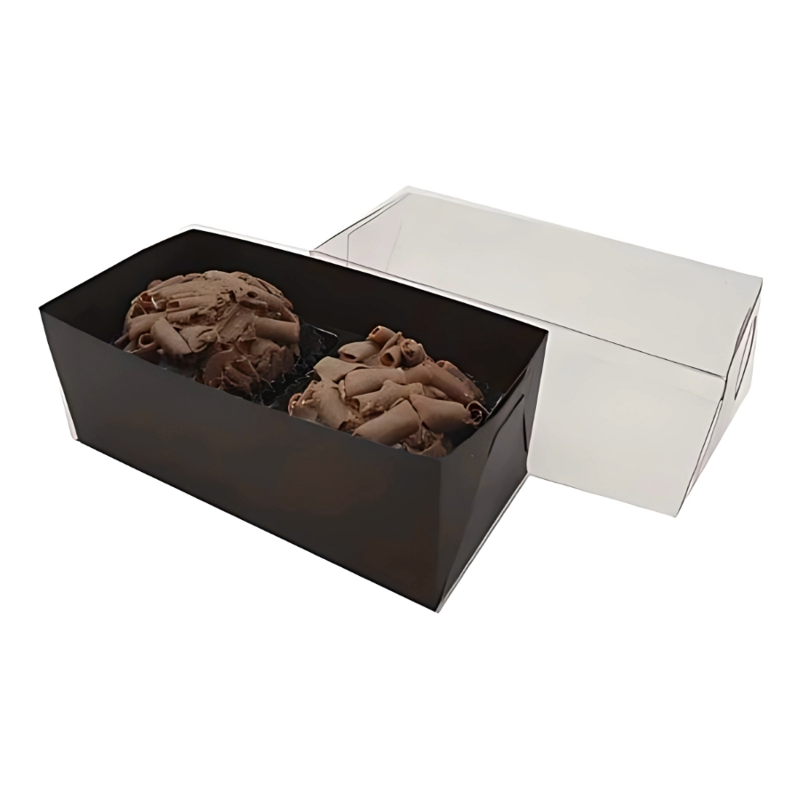 Com dimensões de 8x4x3 cm, essa caixa combina fundo de papel cartão em tom café e tampa de PVC cristal. Estrutura leve, firme e fácil de montar por encaixe, oferece excelente proteção contra amassados e poeira, mantendo os doces em destaque. Seu design retangular permite aproveitamento eficiente de espaço em vitrines, bandejas e kits.