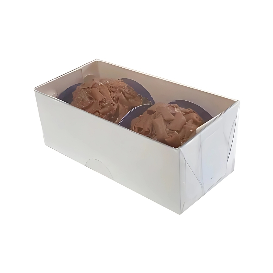Com dimensões de 8x4x3 cm, esta embalagem conta com fundo em papel cartão marfim de alta gramatura e tampa em PVC cristal. A estrutura é resistente, de montagem rápida e ideal para proteger o conteúdo sem comprometer a estética. O visor transparente realça os doces mesmo em vitrines ou kits combinados, oferecendo uma solução elegante e funcional para confeiteiros, artesãos e empresas de presentes.