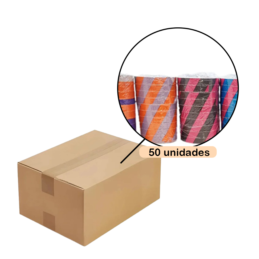 Contém 50 pacotes com 10 unidades cada de serpentinas coloridos, para se divertir na folia!