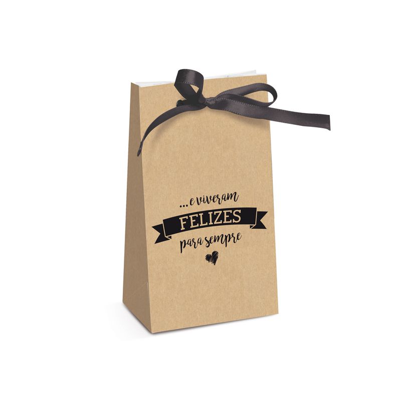 Caixa Special Trapézio Kraft Felizes para Sempre 7,5x4x13cm - 08 unidades - Cromus - Rizzo Embalagens