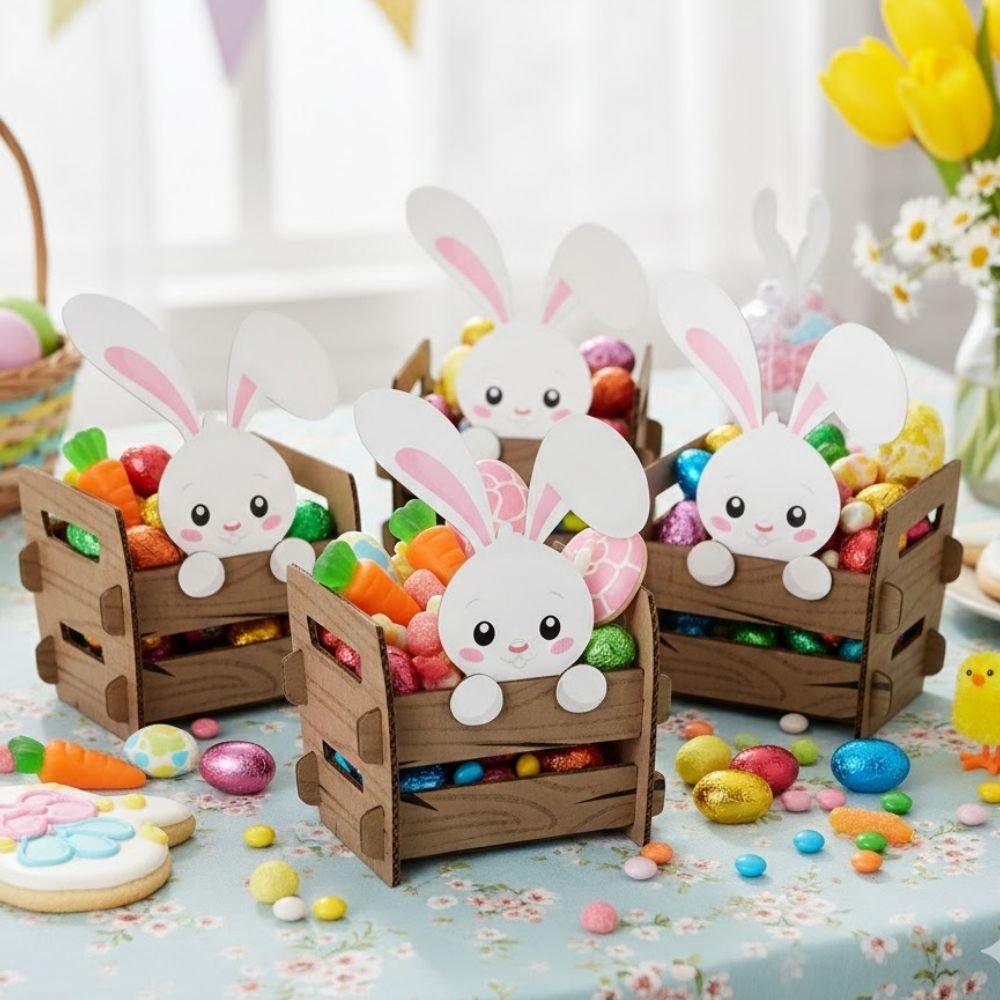 Utilize para montar lembrancinhas com chocolates, mini ovos ou doces variados. Combine com itens decorativos de Páscoa, caixas cenoura, caixas de coelho, palha decorativa ou embalagens temáticas para criar composições criativas e atrativas para festas, presentes ou uso comercial.