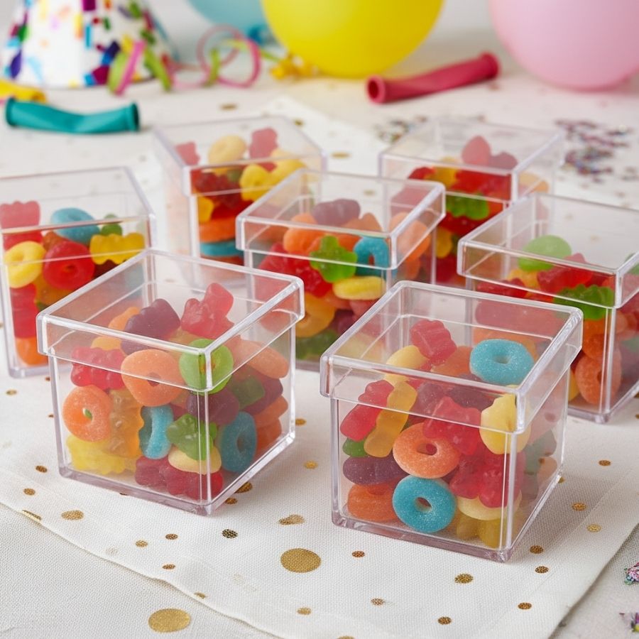 A Caixinha Acrílica Lembrancinha Festa - 4cm x 4cm é o item perfeito para compor kits personalizados e encantar convidados em diferentes ocasiões. Fabricada em acrílico transparente de alta qualidade, permite visualizar doces, balas, gomas e pequenos brindes, deixando a decoração ainda mais delicada e especial.Este conjunto contém 10 unidades, ideal para festas de aniversário, casamentos, batizados, chás revelação e eventos corporativos. Além da praticidade, as caixinhas são resistentes, versáteis e fáceis de personalizar com laços, fitas, adesivos ou etiquetas, proporcionando um toque criativo e exclusivo para cada lembrança! Kit com 10 caixinhas acrílicas transparentes de 4x4cm, ideais para lembrancinhas de festas, podendo ser personalizadas com doces e pequenos brindes.