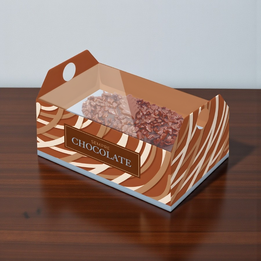 Produzido em papel resistente de alta qualidade, o caixote proporciona estrutura firme e segura, protegendo o meio ovo e mantendo sua integridade. Ideal para embalagens de chocolate artesanais, presentes temáticos e lembrancinhas de Páscoa.
