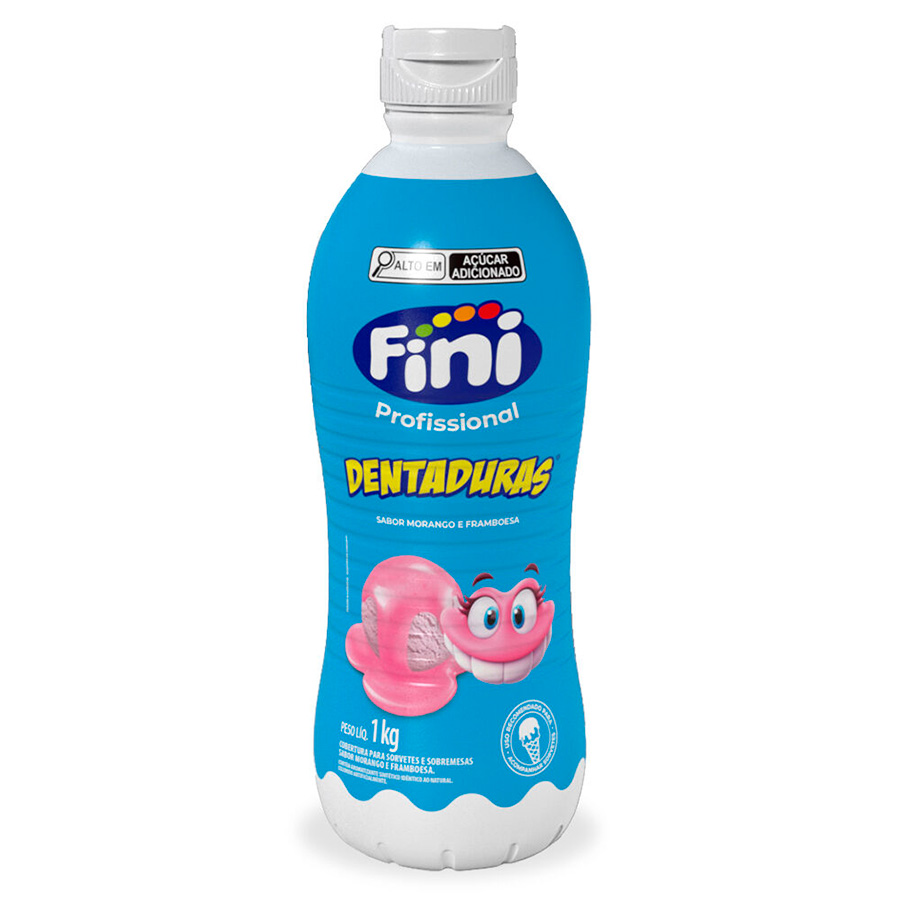 Frasco de Calda Dentaduras da Fini para sorvetes e doces, sabor morango e framboesa