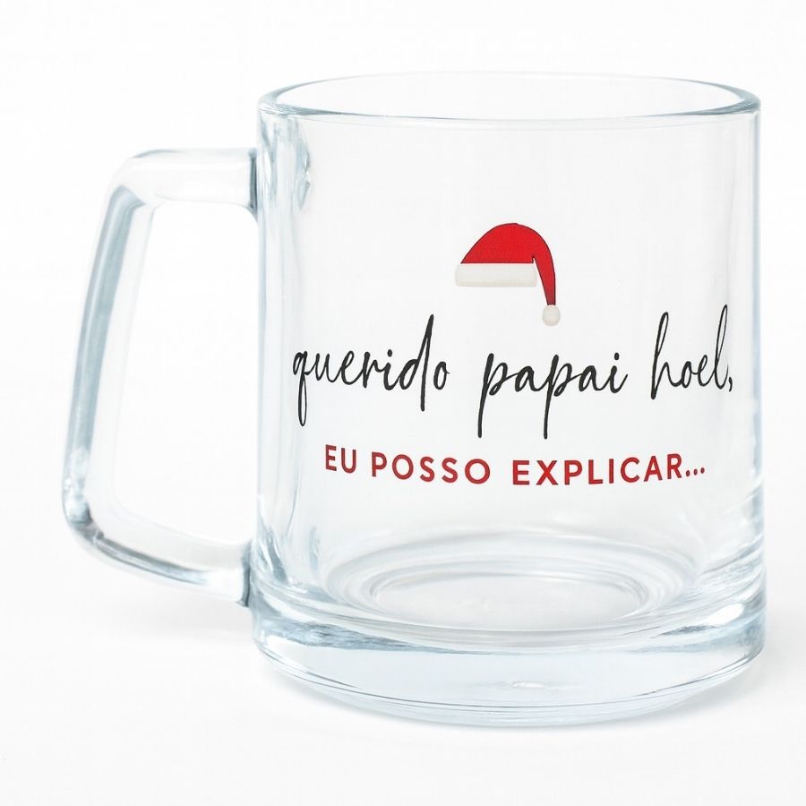 Caneca de vidro da linha exclusiva Querido Papai Noel da Rizzo, capacidade 335ml, ideal para presentear, decorar e celebrar momentos em família durante o Natal.