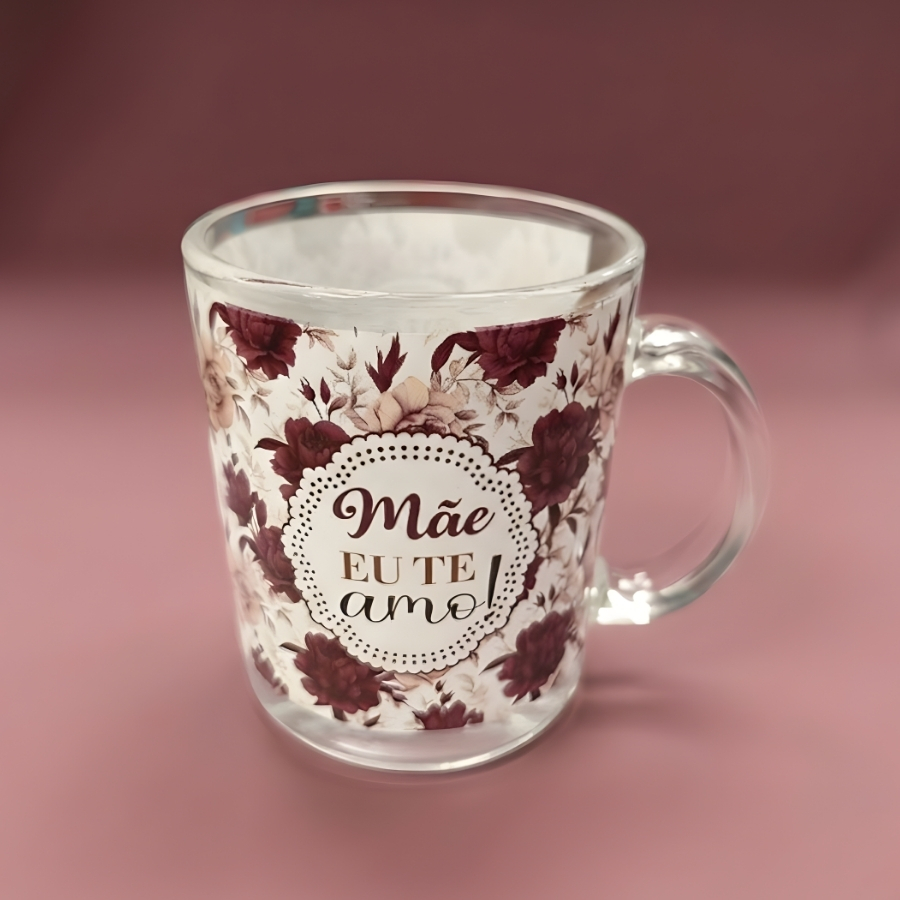Caneca de vidro transparente nas cores vinho e branco, com estampa da frase “Mãe Eu Te Amo”. Capacidade de 320ml. Indicada para uso com bebidas. Produto fabricado em vidro. Recomenda-se manuseio cuidadoso para evitar quedas ou impactos que possam causar danos. A capacidade informada corresponde ao volume máximo aproximado que a caneca comporta.