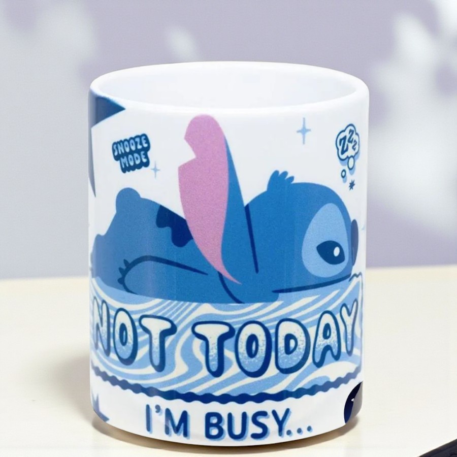 Caneca temática do Stitch com design "Sonhando com Ohana". Capacidade de 350ml, perfeita para fãs da Disney e momentos de aconchego.