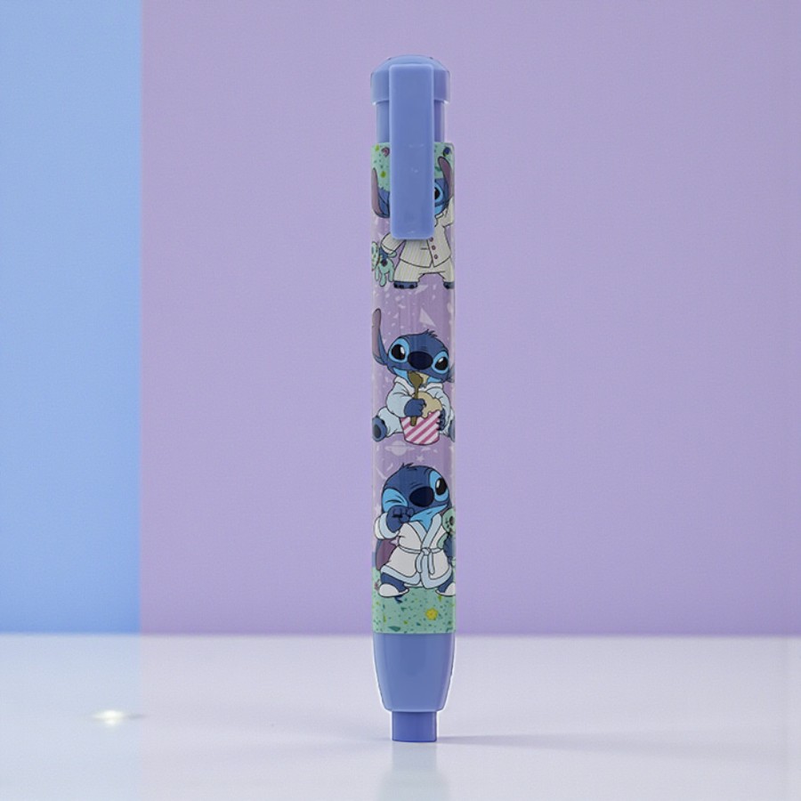 Além da utilidade, a caneta borracha também se destaca pela beleza e pelo apelo decorativo. Combina perfeitamente com lápis Stitch, lapiseira Stitch, caneta Stitch, apontador Stitch e outros itens do mesmo personagem, permitindo montar conjuntos harmoniosos e criativos. É uma ótima opção para uso escolar, organização do material, kits de papelaria fofa, lembrancinhas e brindes temáticos, unindo praticidade e estilo em produtos Licenciado Disney