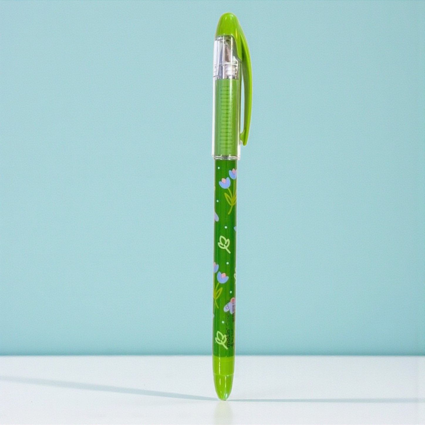 Caneta Grip Floral - Esferográfica Azul - Verde Claro - 1 unidade - Rizzo
