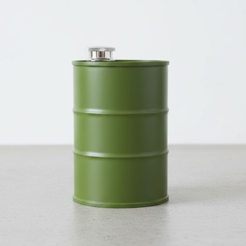 O Cantil em Inox modelo barril é um item prático e estiloso, ideal para quem busca funcionalidade com um visual diferenciado. Na cor verde, ele possui acabamento resistente e design robusto, inspirado no formato de um pequeno barril, trazendo personalidade e charme ao acessório.