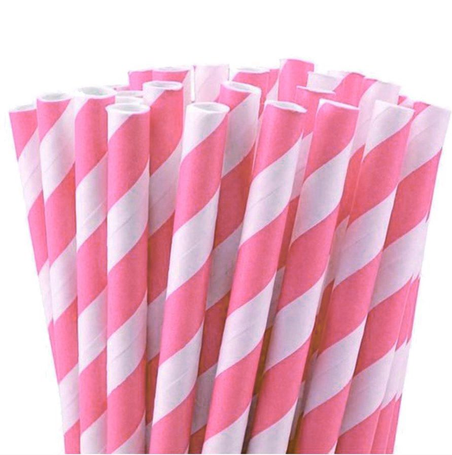 Canudo de Papel Listras Rosa Médio - 20 unidades - ArtLille - Rizzo Festas