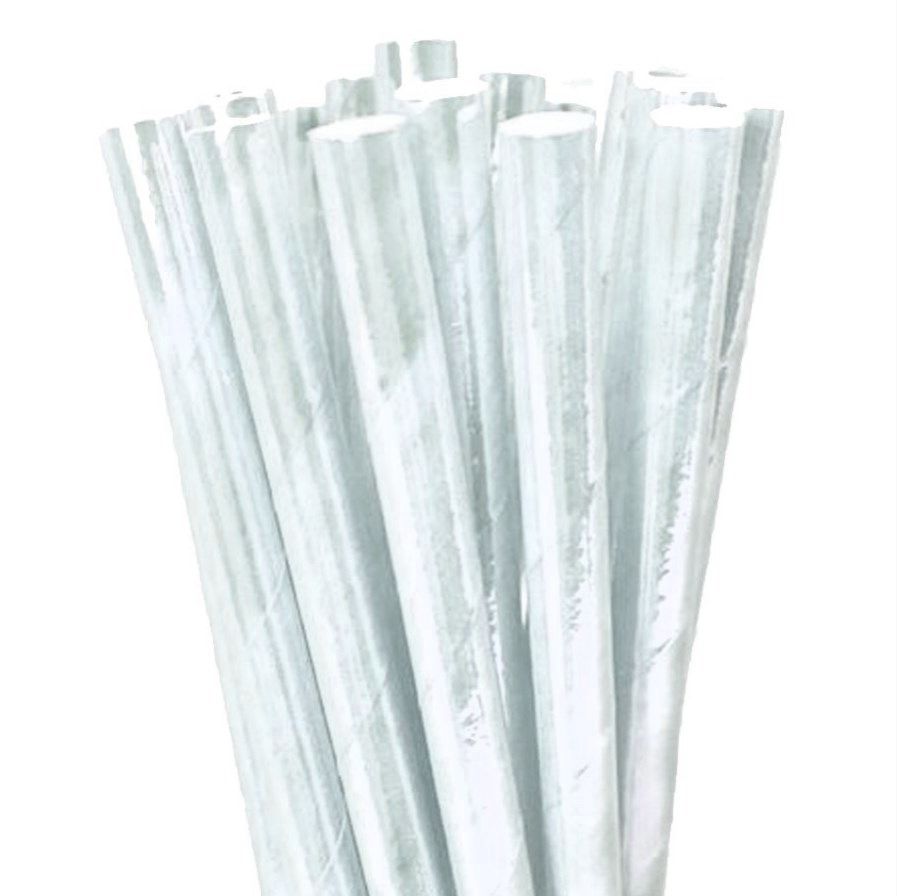 Canudo de Papel Nacarado Prata - 20 unidades - ArtLille - Rizzo Festas