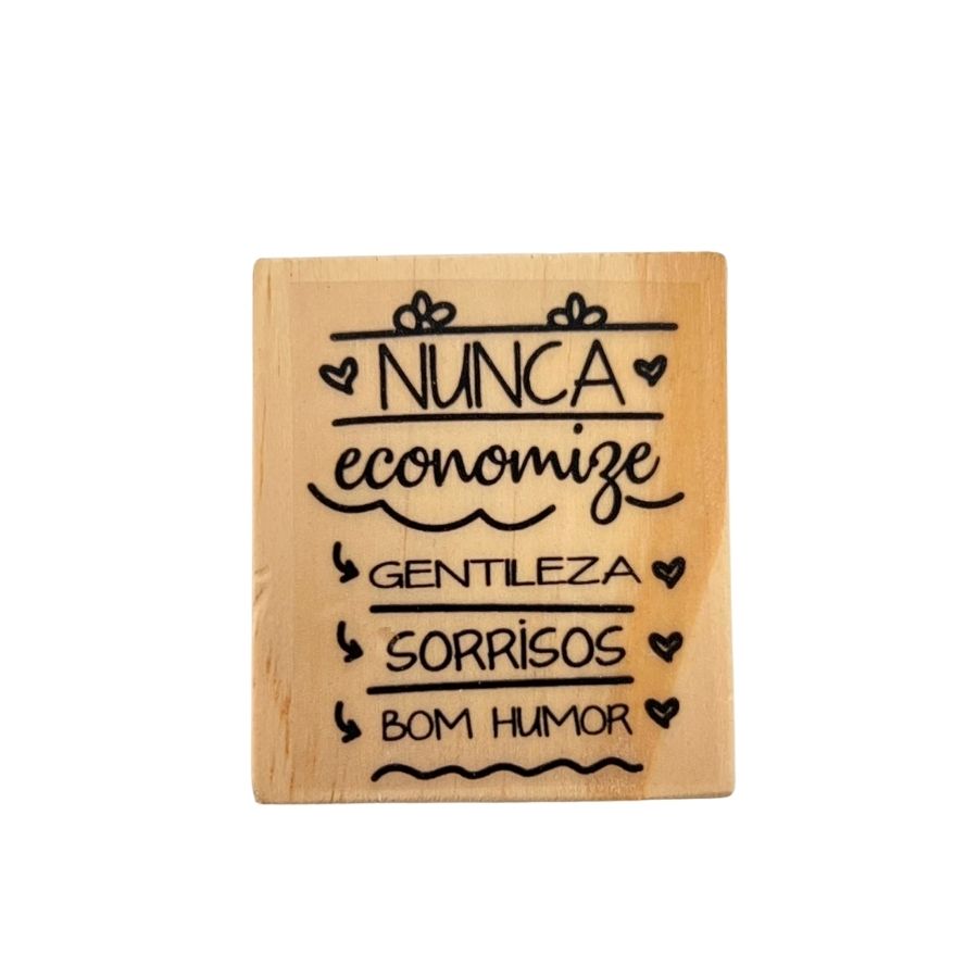 O Carimbo de Madeira Artesanal Nunca Economize - Cod.AF-829 é perfeito para quem ama expressar mensagens positivas e inspiradoras nos seus projetos criativos. Com a frase “Nunca economize amor, gentileza e sorrisos”, este carimbo transmite uma energia acolhedora e cheia de significado, ideal para personalizar cartões, embalagens, tags de presente, planners, agendas, convites e lembranças.