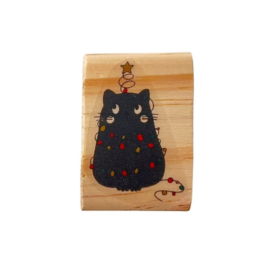 O Carimbo de Madeira Artesanal Gato Preto de Natal Cod. RL-111 P é o detalhe ideal para deixar suas criações natalinas cheias de charme, originalidade e um toque divertido.