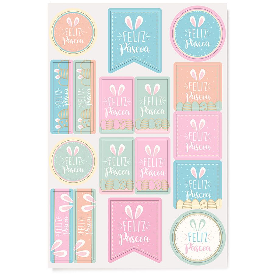 Cartela Adesiva Feliz Páscoa - 34 etiquetas - Cromus Páscoa - Rizzo Embalagens