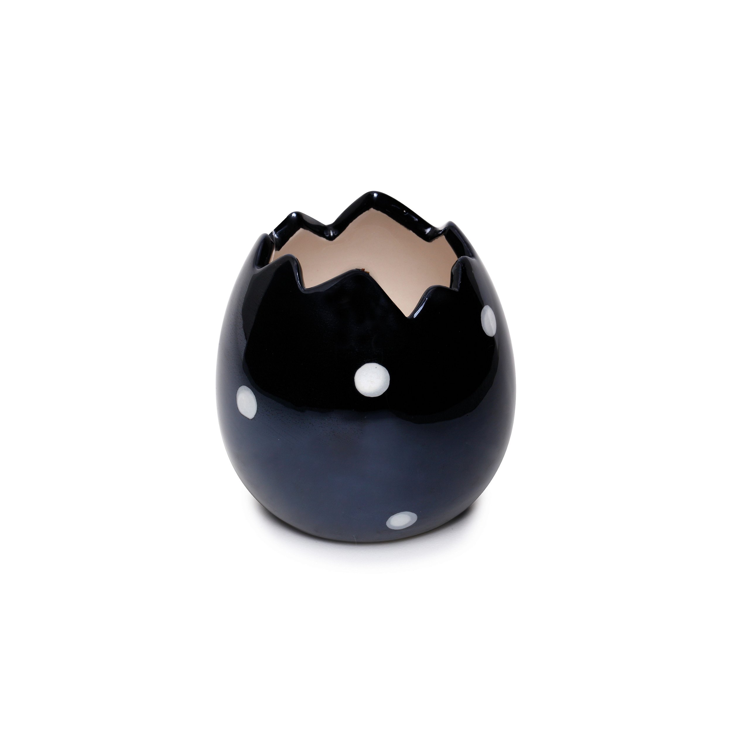 Casca de Ovo Decorativo Bolinhas Branco e Preto em Cerâmica - 8cm x 8cm x 8cm - 1 unidade - Pérola - Cromus Páscoa