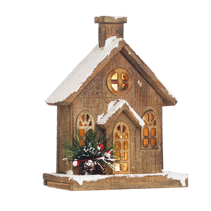 Casinha Sobrado de Madeira Nevada com LED 27cm - 01 unidade - Cromus Natal - Rizzo Embalagens