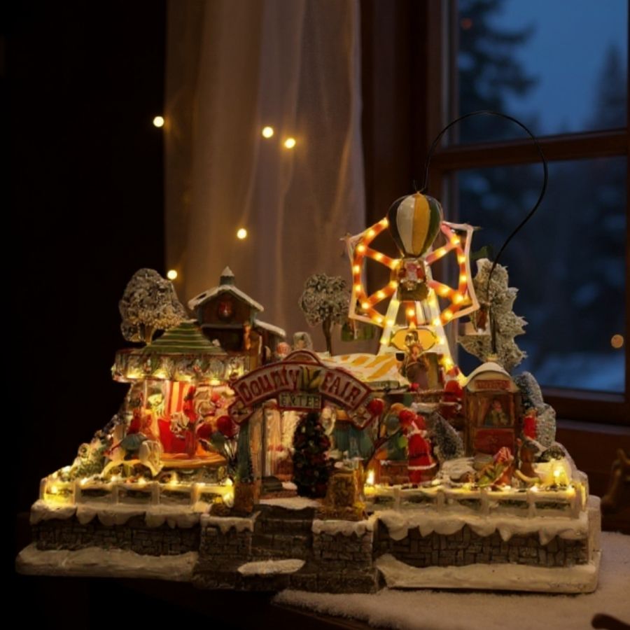 Ideal para mesas, aparadores, vitrines e vilarejos natalinos, o cenário combina som, luz e movimento em uma peça de grande impacto visual, tornando o ambiente mais festivo e acolhedor. É perfeito para quem deseja criar uma decoração de Natal memorável, interativa e cheia de charme.