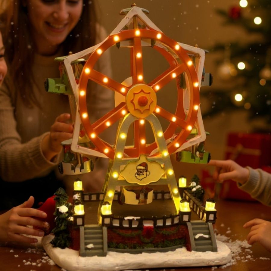 O Cenário de Natal Roda Gigante com som, luz e movimento é uma peça decorativa encantadora que combina beleza, música e iluminação para deixar sua decoração natalina cheia de vida e emoção, produto a pilha.