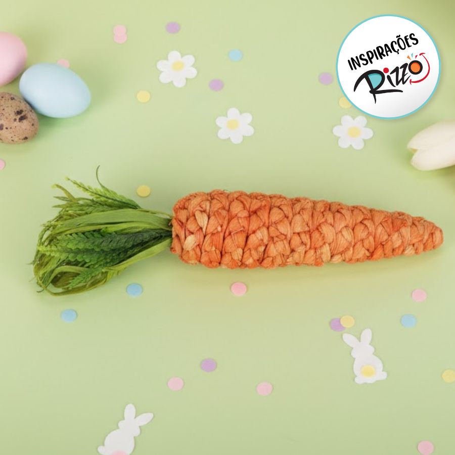 A cenoura decorativa, com sua forma clássica e tamanho impressionante, adiciona um toque rústico e festivo ao ambiente. Coloque-a como parte da decoração da mesa, em áreas de destaque ou como um elemento decorativo em diferentes espaços da casa. A "Cenoura Decorativa de 45cm" é uma escolha encantadora para trazer um toque especial e impactante à sua celebração pascoal.