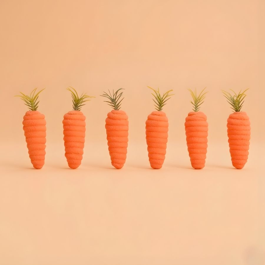 Enfeite decorativo de Páscoa no formato de mini cenoura espiral, fabricado em espuma. Possui cores laranja e verde e dimensões aproximadas de 9x2cm. Indicado para uso em decorações temáticas de Páscoa, arranjos decorativos e composições de ambientes. Produto destinado exclusivamente para uso decorativo. Recomenda-se evitar contato com água, calor excessivo e compressão que possa deformar a espuma.