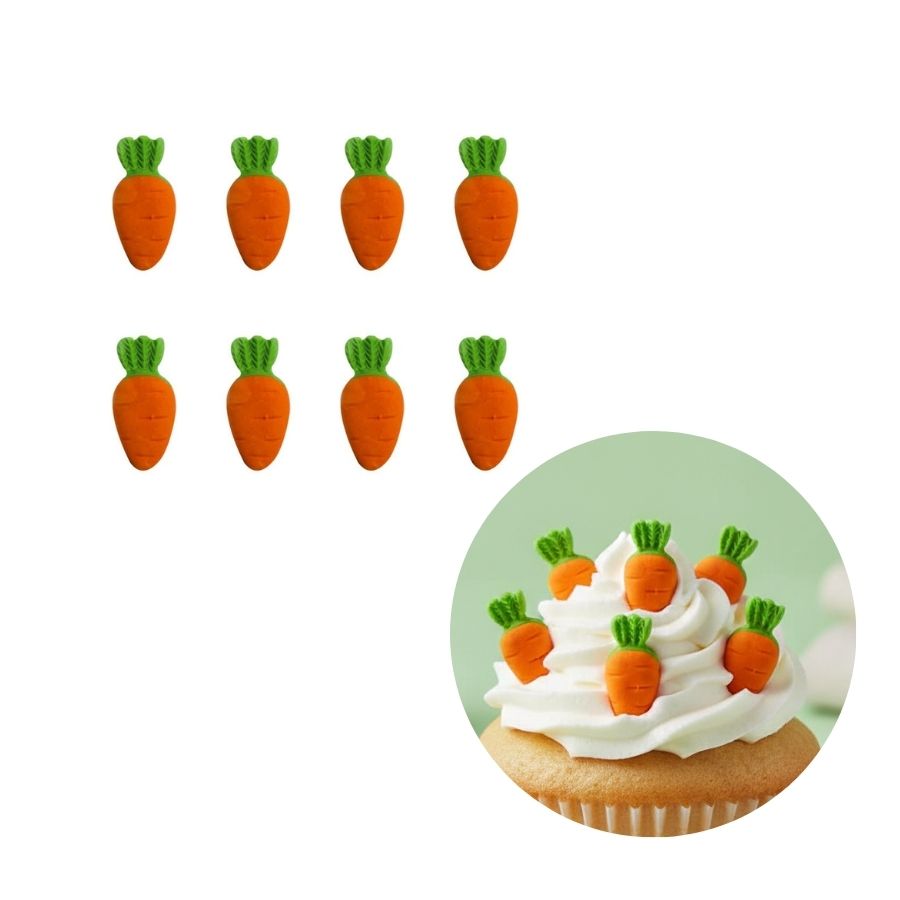 Confeitos de açúcar coloridos artificialmente, com o formato de cenoura ; ideal para você fazer lindas decorações em bolos, cupcakes, docinhos e muito mais. Deixe seus eventos com um toque muito mais sofisticado e elegante.