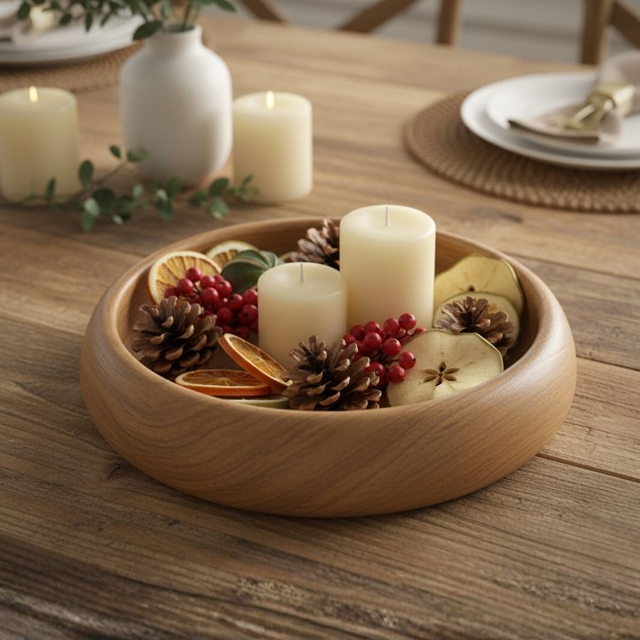 O Centro De Mesa Tigela Redonda em Madeira - 27x27x7cm é uma peça versátil e elegante, ideal para adicionar detalhes de estilo e personalidade aos ambientes. Seu formato rasa e redondo transforma qualquer mesa, aparador ou prateleira em um ponto de destaque no Home Decor, promovendo organização e charme natural na decoração de salas, cozinhas ou escritórios.