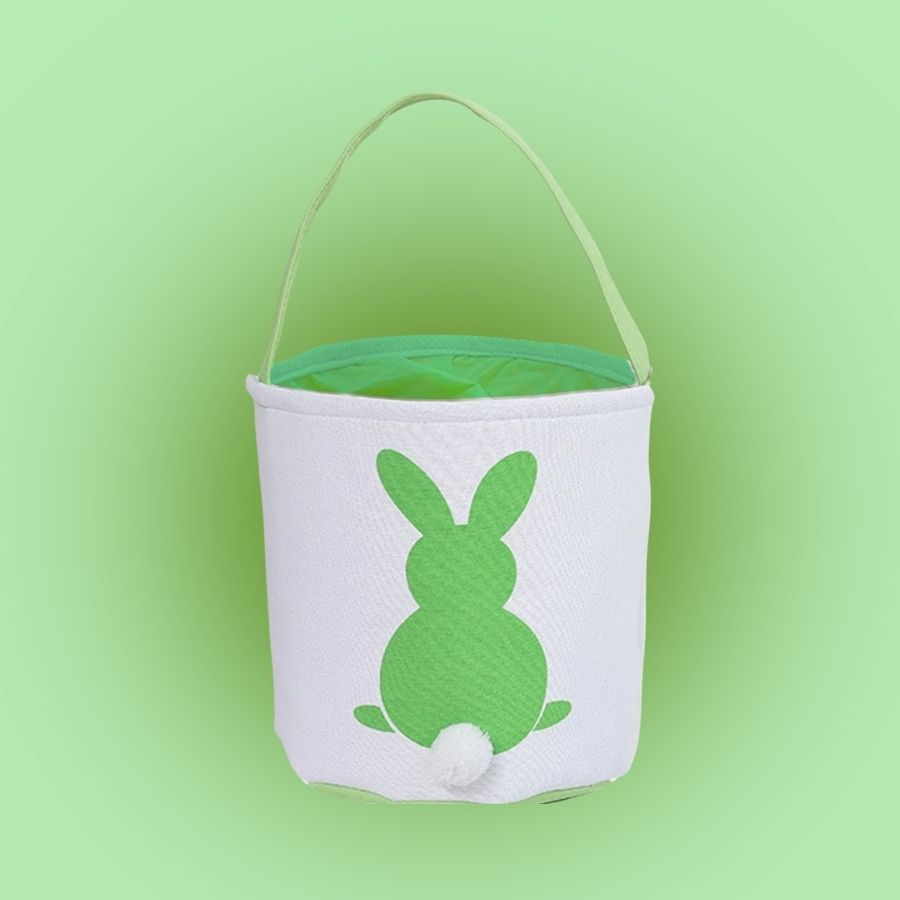 Cesta decorativa de Páscoa com silhueta de coelho na cor verde, medindo aproximadamente 17x17x18cm, ideal para montar cestas e kits com chocolates, doces e presentes temáticos.