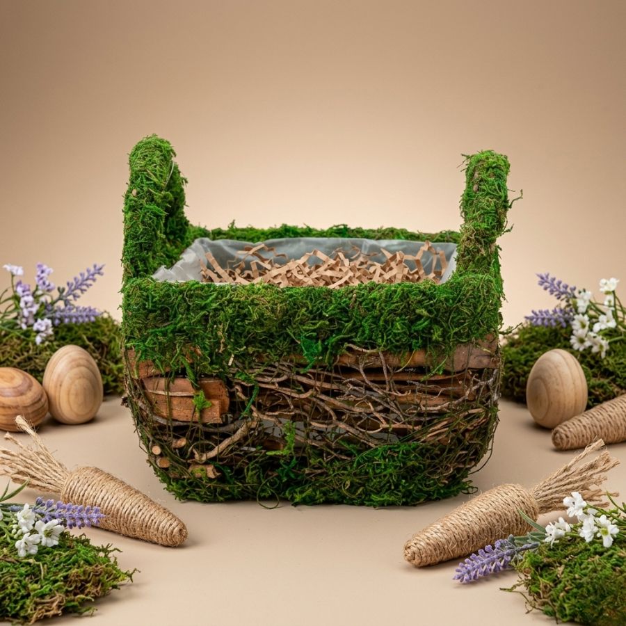 A Cesta Quadrada de Musgo Pequena é uma encantadora peça decorativa que combina o charme da forma quadrada com a textura natural do musgo. Com sua cobertura de musgo em tons de verde e marrom, esta cesta proporciona uma estética rústica e autêntica.